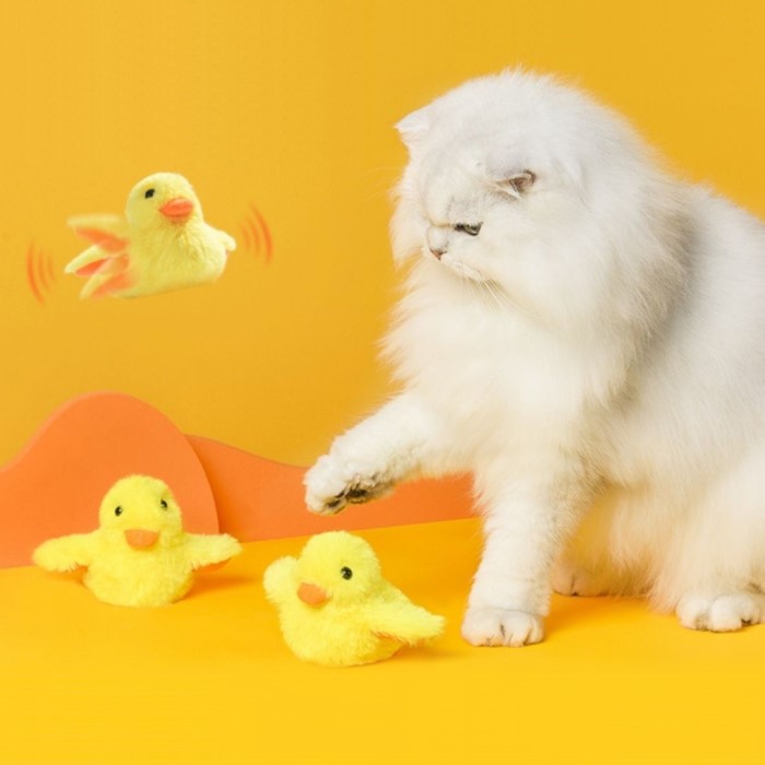 ぱたぱた羽ばたく、愛らしいひよこです。内蔵タッチセンサーがひよこへの衝撃を感知し、自動的にバタバタしたり揺れたりします。